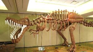 A kanadai Mark Verge 16 év lufi hajtogató gyakorlat után döntött úgy, hogy ezt a tevékenységét összekapcsolja másik szenvedélyével, a fosziliák gyűjtésével. Így elkezdett dinoszaurusz csontvázakat tekerni lufiból. A sok erőfeszítés meghozta gyümölcsét és 1400 léggömb felhasználásával elkészült legfigyelemreméltóbb műve, a T-Rex csontváz, mely nem egy vázra épült szerkezet, csak az alátámasztás tartja a művet.